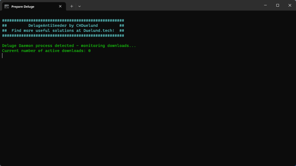 Write-Host "`nDeluge Daemon process detected - monitoring downloads..." -ForegroundColor Green