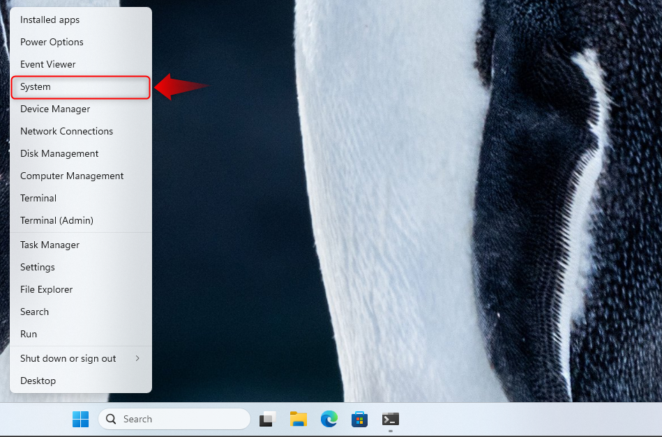 - Right-click on the Start menu and select “System.”