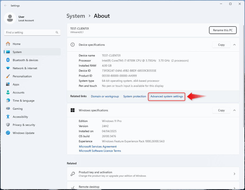 - Click on “Advanced system settings.”