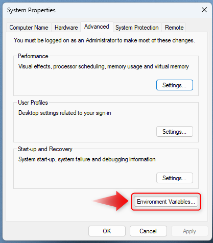 - Click on “Environment Variables…”